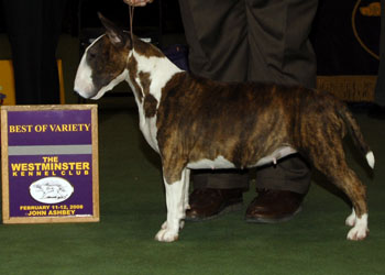 I don’t care if you care or not, but tonight and tomorrow I’ll be glued to the Westminster Kennel Club 2008 Dog Show.  Clio didn’t enter, so I won’t be rooting for her obviously, but Ch Paradox Muse-Ic To My Ears just won Best of Breed in the Bull Terrier colored department, and this dog’s a beauty!