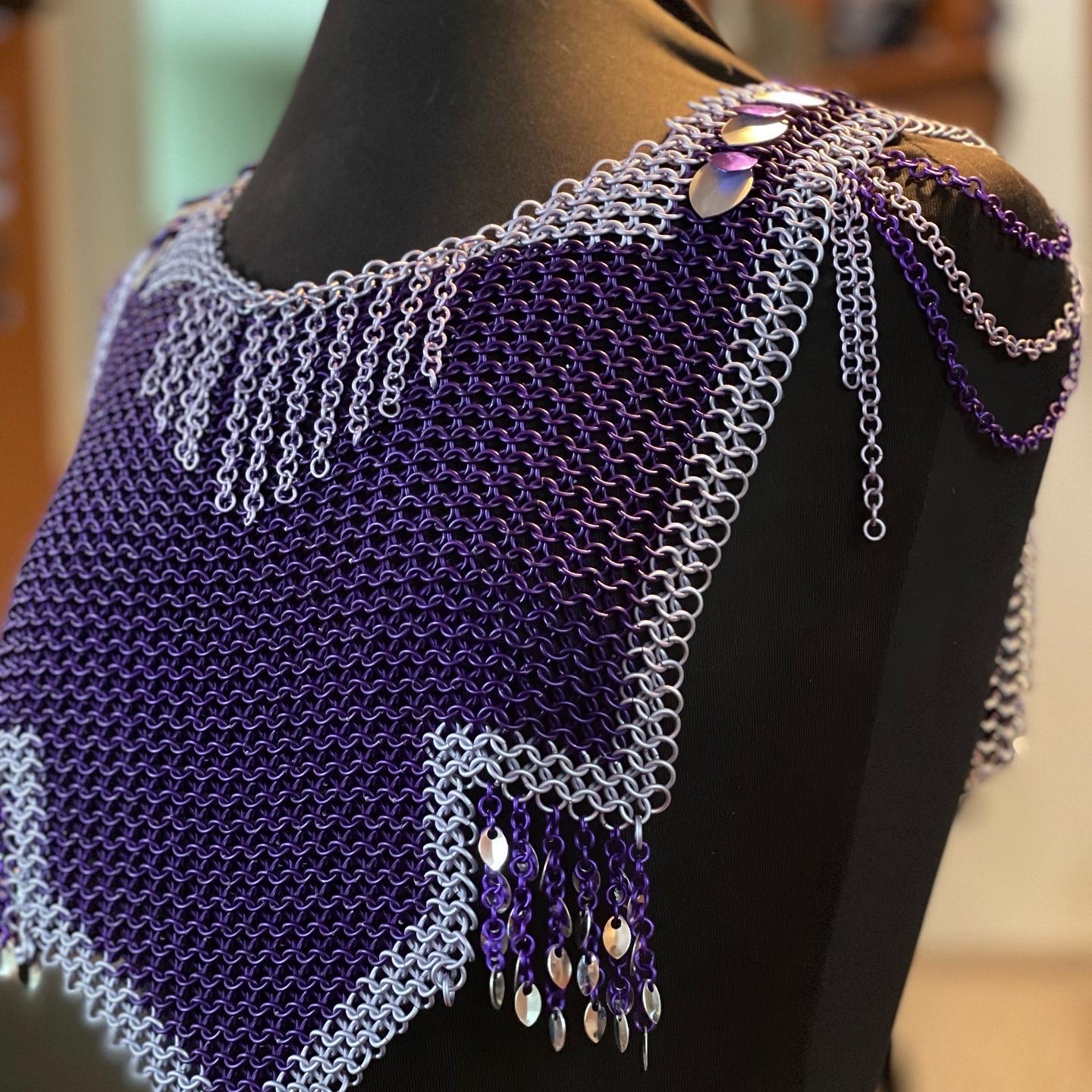 Matt Dark and Light Purple’s, with fringe and tiny shimmering silver scales