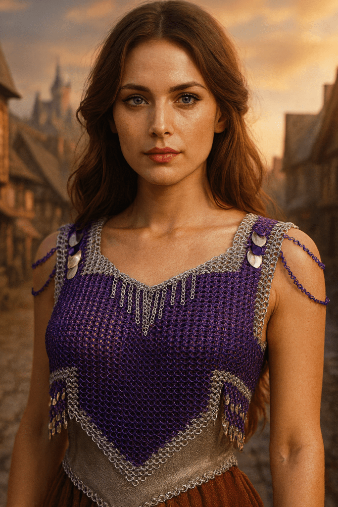 Step into legend with Royalborne—a handcrafted European 4-in-1 chainmaille necklace in dark purple and lavender, crowned with silver dragon scales. Regal, bold, and destined for fantasy realms.